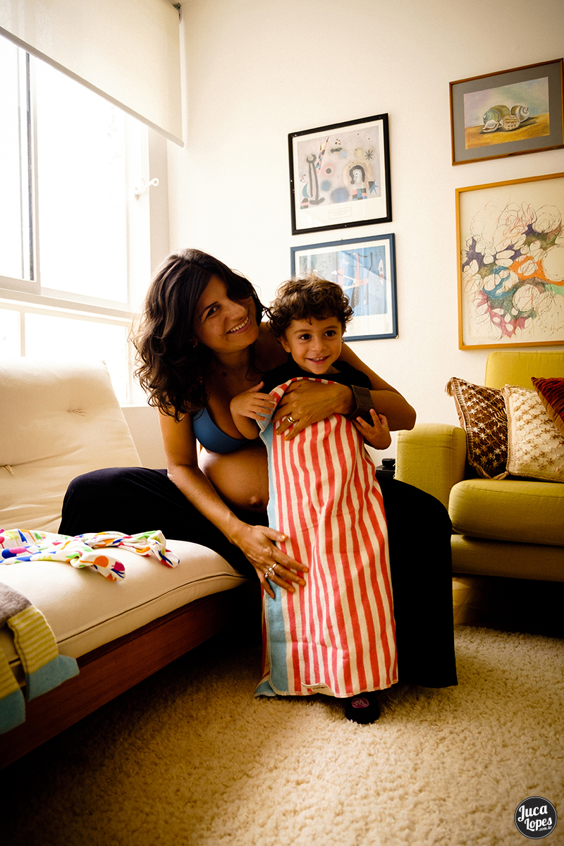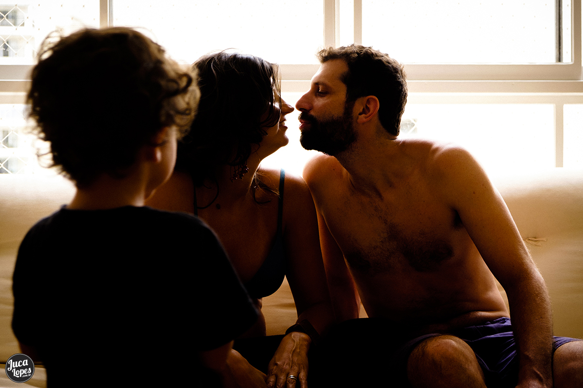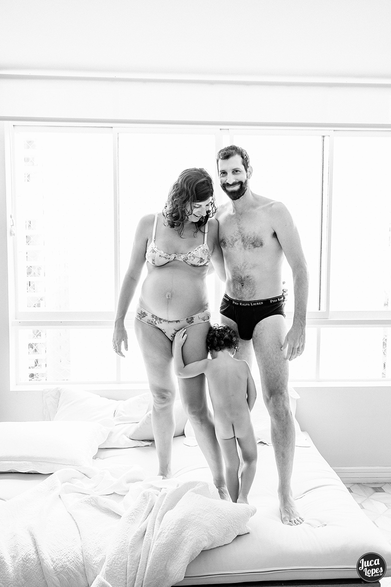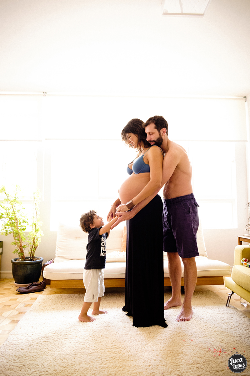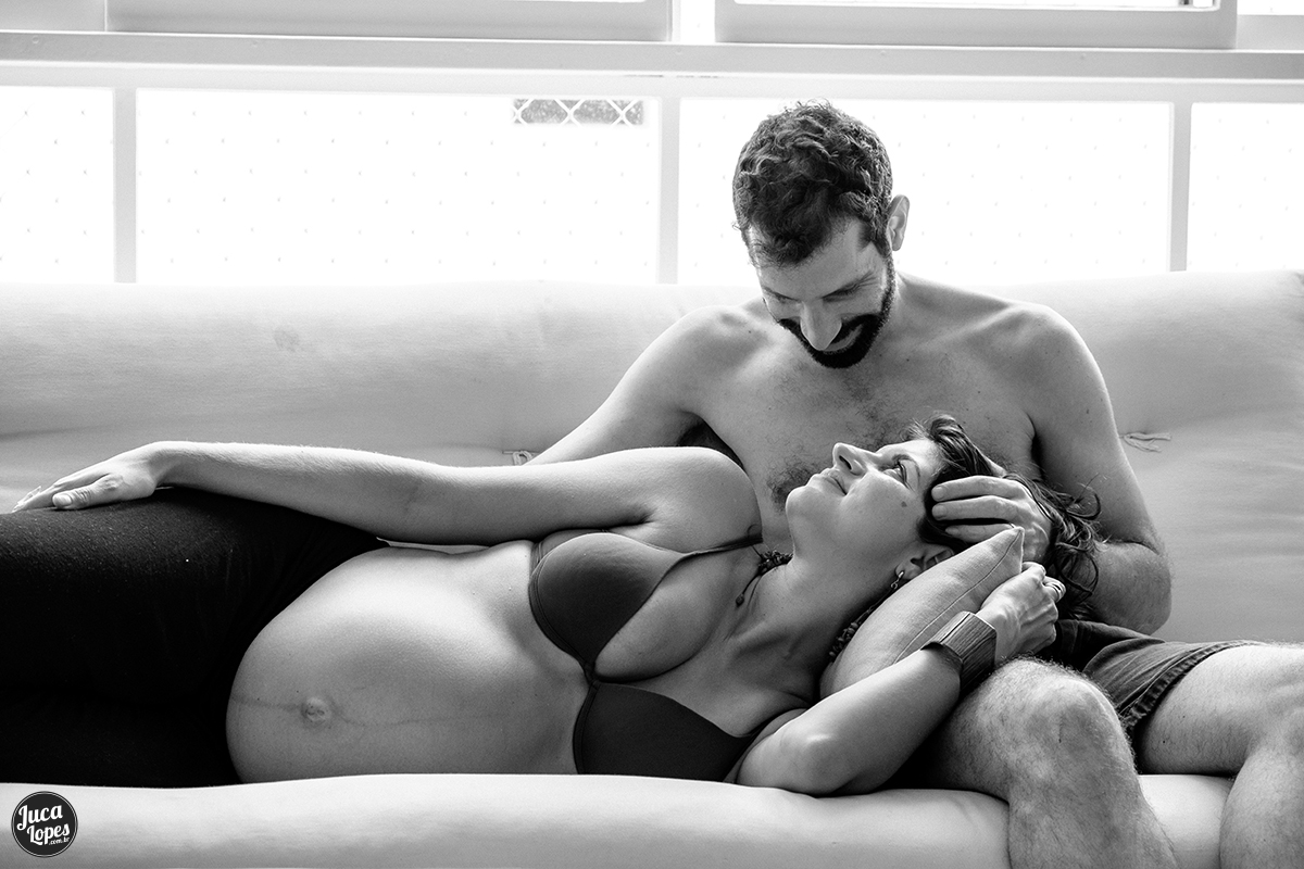 Essa é a segunda parte do ensaio de gestante da Ju, quando o tempo apertou, aproveitamos para almoçar e tocar o ensaio em casa. O ensaio em casa é muito mais fácil de organizar. Como é um ambiente confortável e conhecido, quem participa fica mais à vontade e as fotos focam com mais naturalidade as transformações do corpo e as relações entre as pessoas. Fotografar esse contato pele a pele é uma das coisas mais legais que existe, pois nos coloca em contato com nós mesmos e quebra a barreira entre nós e o outro, criando um momento para se conectar e estar juntos. É emocionante também sentir os pais se apropriarem dessa transformação que acontece no corpo das mulheres, mas que transforma a ambos.